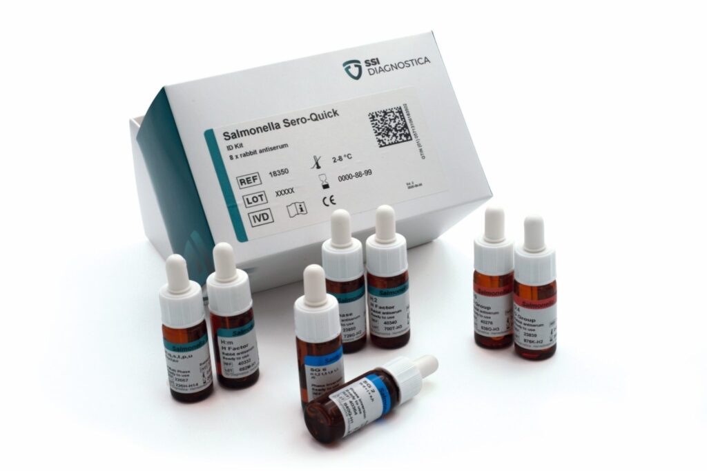Diagnostica Group’s Salmonella Sero-quick ID kit is intended for complete serotyping of S. enteritidis (1,9,12:g,m:-) and S. typhimurium (1,4,[5],12:i:1,2). The kit consists of eight different antisera: O:4, O:9, H:i, H:m, H:2, H:q,s,t,p,u, SG2 and SG6.