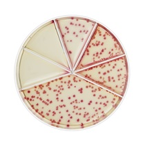 Flexicult® Vet is designed as an agar plate with elevated sides and divided into compartments with partitions and a lid. There is one large compartment for quantitative analysis