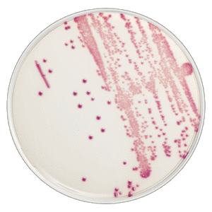 For example the E.coli will grow as large red colonies where Enterobactor species will grow as big dark blue/violet colonies.